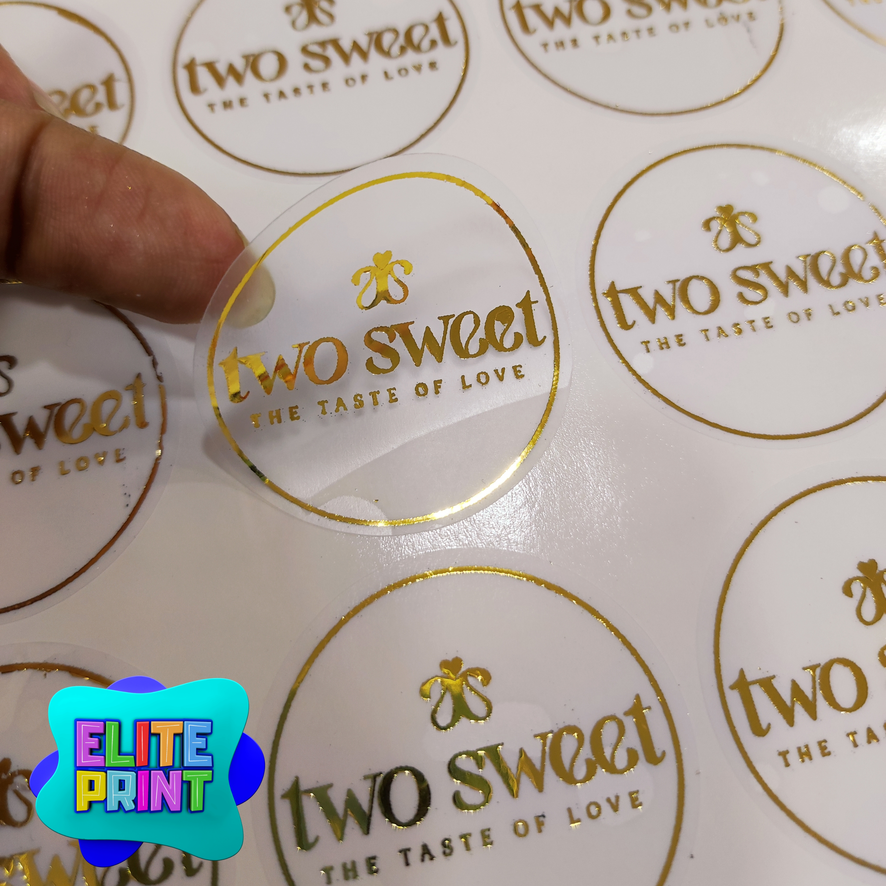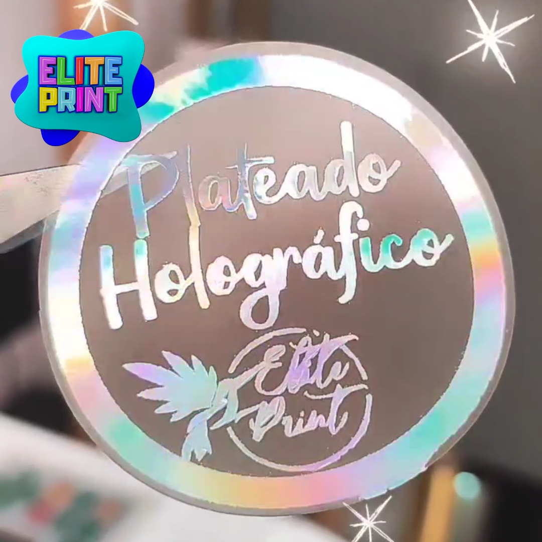 Sticker que se distingue por su acabado metalizado y/o brillante, que se aplica a la superficie de la etiqueta, creando un efecto visual llamativo y elegante. Fondo blanco o transparente